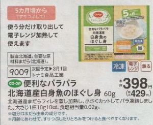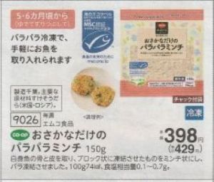 骨と皮がとってあるとこんなにも楽で、気持ちにも余裕が生まれます!と、ママから絶賛!の骨と皮を取って冷凍したお魚、離乳食期にはほぐしておかゆに混ぜたり、自分で食べるようになっても骨が取ってあるので安心して食べさせることが出来ます。コープデリのカタログにはおさかなだけのパラパラミンチ、白身魚が掲載。パルシステムには、「骨抜き魚」の扱いが豊富。(デリにも「骨抜き魚」はあるのですが、育児カタログに掲載はありませんでした)