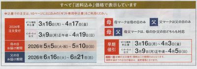 パルシステムの母の日のギフトは、5/5~5/10までの間に届きます。配達日の指定は出来ません。
