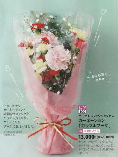 イオンでカーネーションを注文すると4月13日までに注文すれば、3850円の10%引きの早得プライスで 3465円。(税・送料込)