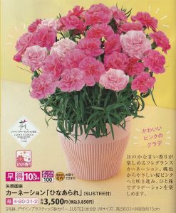 カーネーションの鉢を買うならイオンのほうが割安感がありますね。