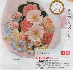 イオンの母の日の花束。長さ約40cmで3300円(税・送料込)