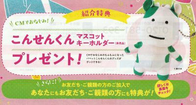 4・(神奈川限定)→紹介特典3000円分のクーポン+こんせんくんマスコットキーホルダー(3000円+α)