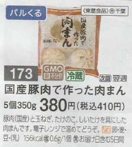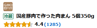 イオンで扱っている「井村屋ゴールド肉まん」は2個200gで289円。100gあたりの値段はパルシステムが108円、イオンが144円でパルシステムのほうが安いです。