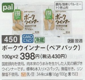 ・パルくる便にいれてます。 市販の無縁せきウインナーも買ったことありますが、こちらのほうが断然ジューシーでお肉の味がしっかりして美味しいです!余計な添加物も入っていなくて安心して食べられるし、とにかく娘も私も大好きなウインナーです(^^)